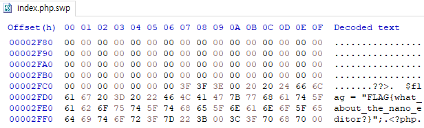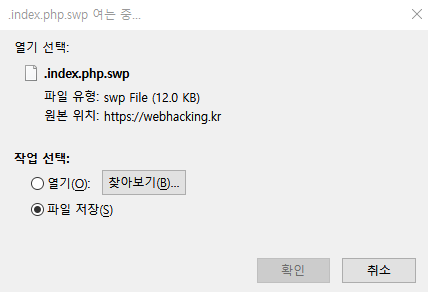그럼 해당 문제에서의 스왑파일은 .index.php.swp가 될 것이다.