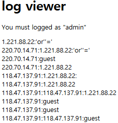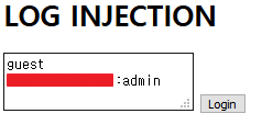 log viewer에서 로그가 쌓이는 형식이 [ip주소]:[id] 이므로 guest\r\n내 IP주소:admin으로 입력해보자.