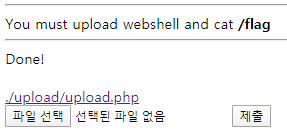 정상적으로 파일이 업로드 되었고, 해당 파일에 접근하게 되면 flag값이 쓰여있는 것을 확인할 수 있다.