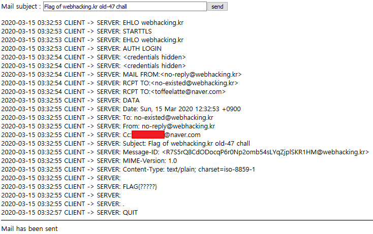 해당 메일을 나에게도 보내도록 해 그 안에 있는 FLAG 값을 확인해 문제를 해결하면 될 것이다.