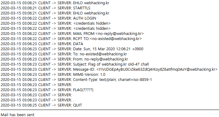 메일이 정상적으로 수신되었으며, FLAG 값을 Auth 페이지에 제출하자.