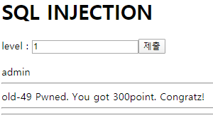 쿼리문의 반환값이 admin일 경우 문제를 풀린다.