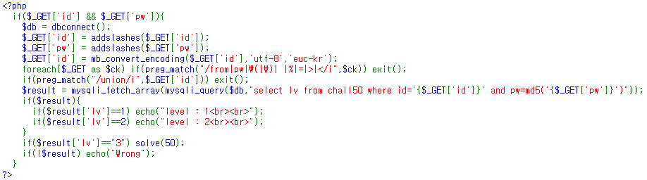 id와 pw에는 from, pw, (, ), 공백, %, =, >, < 문자열을 필터링 된다. id에는 추가적으로 union 문자열이 필터링 된다.