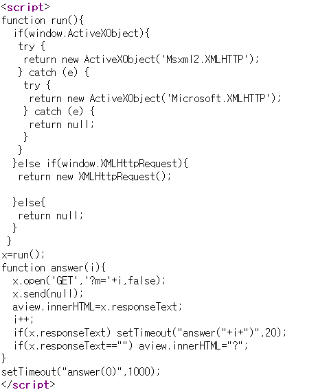 마지막 조건문의 if(x.responseText=="") aview.innerHTML="?"; -> if(x.responseText=="") aview.innerHTML;
