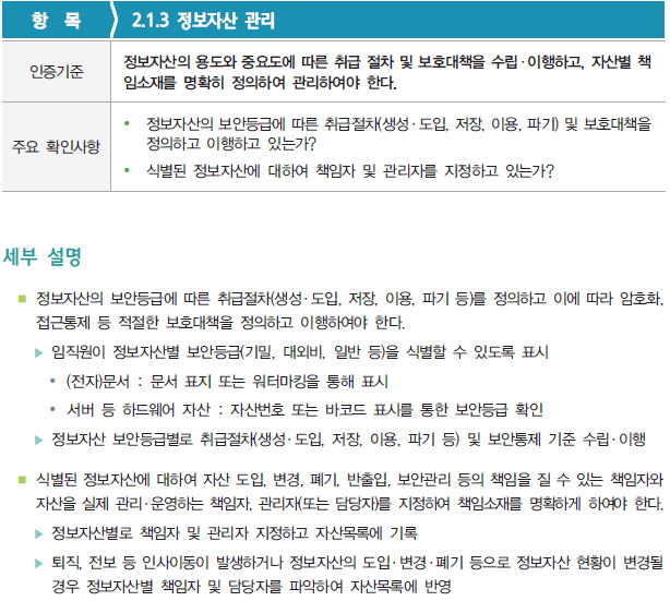 [ISMS/ISMS-P] 2.1.3 정보자산 관리 관리체계 인증기준 2번째 영역인 '2. 보호대책 요구사항' 부터 살펴보자. 이번 영역에서는 총 64개의 세부 인증기준 중에서 '2.1. 정책, 조직, 자산 관리' 분야에서 '2.1.3 정보자산 관리' 항목을 확인해보자. 해당 '2.1.3 정보자산 관리' 항목의 활동을 증빙하기 위한 증적자료 예시는 다음과 같다. 다음은 결함사례를 살펴보자. 정보보호 인증/ISMS-P 2021.11.15