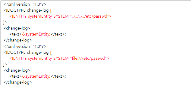 ※ XML 외부 개체(XXE) XXE는 악의적인 자바스크립트를 막기 위한 필터장치를 우회하는 취약점으로 XML 문서에서 동적으로 외부 URI의 리소스를 포함시킬 수 있는 외부 엔티티(Entity)를 사용할 때 발생한다. 오래되고 설정이 엉망인, 많은 XML 프로세서들은 XML 문서 내에서 외부 개체 참조를 평가한다. 외부 개체는 파일 URL 처리기, 내부 파일 공유, 내부 포트 스캔, 원격 코드 실행과 서비스 거부 공격을 사용하여 내부 파일을 공개하는데 사용할 수 있다. ※ XXE Injection 일반적으로 잘못 구성된 XML Parser를 사용하여 신뢰할 수 없는 XML 공격 코드를 주입시켜 실행시키는 응용프로그램에 대한 공격을 말한다. 해당 공격을 통해서 주요 시스템 파일 접근(LFI)이나 외부 악..